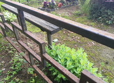 Дополнительно устанавливаем напротив надгробий металлические лавочку и столик, сидение скамьи изготовлено из дерева.