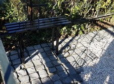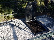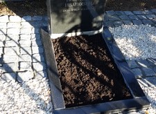 Практически все, что требуется для удовлетворительного внешнего вида – это обустроить пол. Так и в этом заказе. Мы сделали пол, частично из брусчатки, частично из мраморной крошки. Установили металлическую лавочку. Поправили покосившуюся плиту и установили цветник.