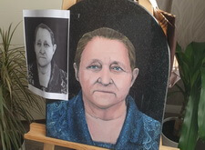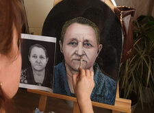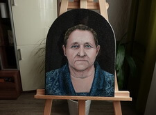 Первый этап работы – компьютерная обработка. Мы заменили одежду усопшей; удалили с головы платок, открыв полностью голову покойной; а также провели детальную доработку её лица: удалили большое количество морщин, сохранив черты.