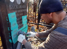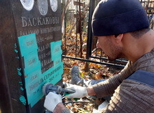 На данной могиле нам предстояло добавить на памятник новую надпись, а также заменить обветшавшую от времени фотокерамику.