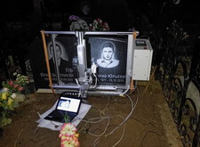 Гравировки портрета и надписи на кладбище,