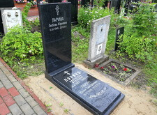 На него установили цветник и подставку для памятника. Борта цветника накрыли стоявшей ранее на участке гранитной доской, предварительно её отполировав и добавив гравировки. Получившаяся надгробная плита выглядит довольно-таки презентабельно.