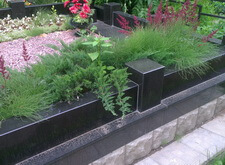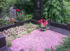 Гранит, крошку помыли. Цветник и можжевельники почистили от сорняков. Цветы и вечнозелёные полили. Могила в полном порядке.