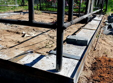 В первую очередь мы очистили территорию участка от сорной травы и прочего мусора. Обойтись совсем без демонтажа не получилось, однако мы сохранили нетронутым ограждение участка. Для создания чёткого периметра будущей могилы, мы подготовились к заливке опалубки.