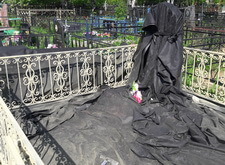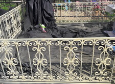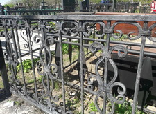 Очень трудоёмкий процесс покраски кованного металлического ограждения. Так выглядела оградка до начала проведения работ.
