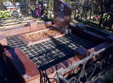 Облицевали бетон полированным гранитом, на территорию участка уложили брусчатку, предварительно приподняв памятник.