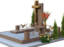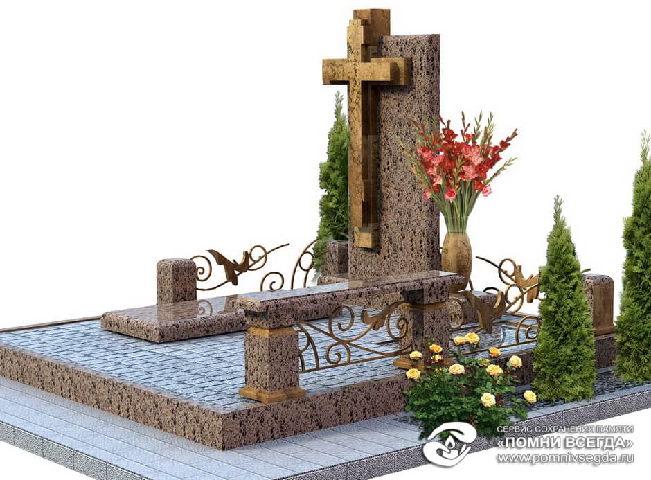Модель памятника для места захоронения размером не более 2.5 на 2.5 метра. Памятник изготовлен из гранита и металла. Гранит выбран цветной, неоднородность вкраплений средняя. Металл в данной модели - это сталь кортеновская, прекрасный и долговечный материал, идеально подходит для создания сложных композиций на месте захоронения.