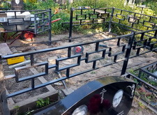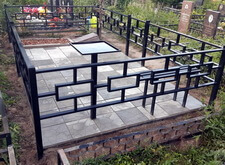 Первое, что мы сделали на могиле – уборку. Тщательно очистив место захоронения от сорной травы и прочего мусора, мы взялись за монтаж ограждения. Ножки оградки вбили в специальные ямы, а по нижней её части проварили металлический борт, служащий одновременно и ограничителем для плитки, и дополнительным каркасом, придающим жёсткость самой конструкции.
