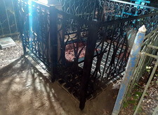 Тем временем мы изготовили табличку, закрывающую лицевую сторону надгробья, а также православный крест, венчающий памятник. Установка этих элементов завершила реставрацию памятника и мы взялись за укладку гранитной брусчатки, оставив в одном из углов участка место под квадратную клумбу. Брусчатку замыли водой и оставили высыхать, в цветник же насыпали мульчу. Окончание работ на данном месте захоронения происходило в тёмное время суток, так как для заказчика срочность благоустройства была одним из решающих критериев при выборе мастеров.