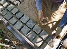 Приступаем к выкладке брусчатки, параллельно с этим устанавливаем лавочку.