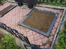 Могилу нашли, уборку провели, памятник помыли. Жаль, что это не решит проблему зарастания могилы сорняком в дальнейшем. В идеале необходимо было бы полностью перекладывать плитку на полу. Сейчас она уложена не правильно.